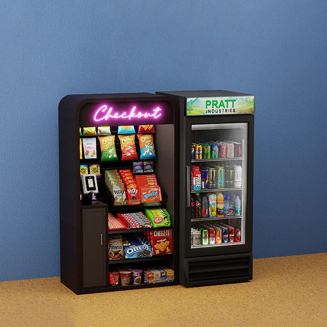 A micro market is like a mini convenience store in your breakroom. Open shelving and glass-front coolers give employees easy access to fresh meals, healthy snacks, and premium drinks from protein shakes and cold brew to grab-and-go salads.