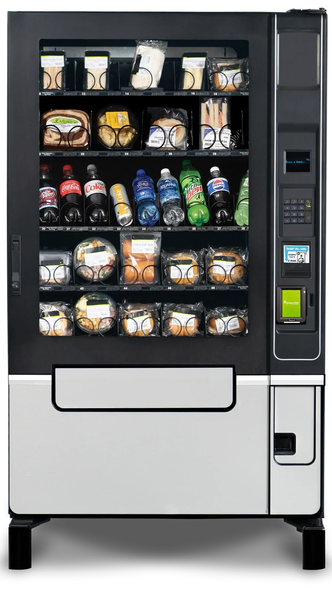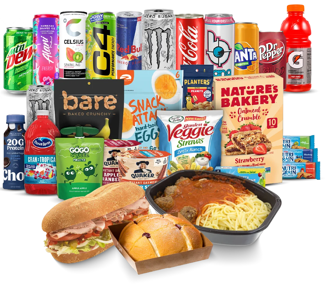 We offer a wide range of better-for-you snacks, meals, and drinks through vending machines, including: